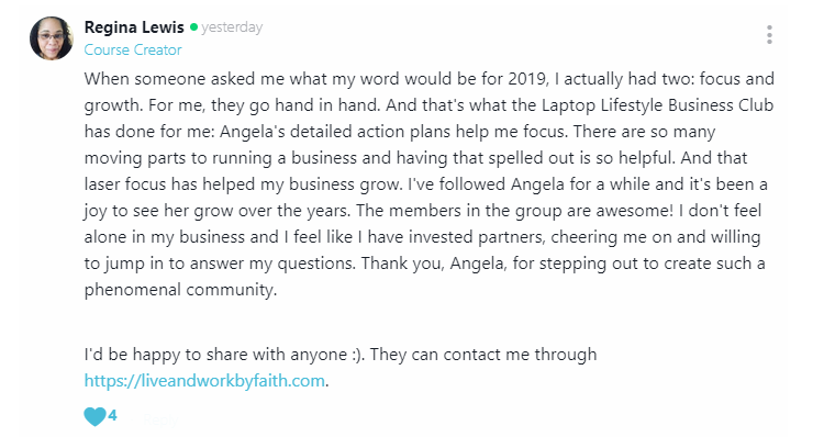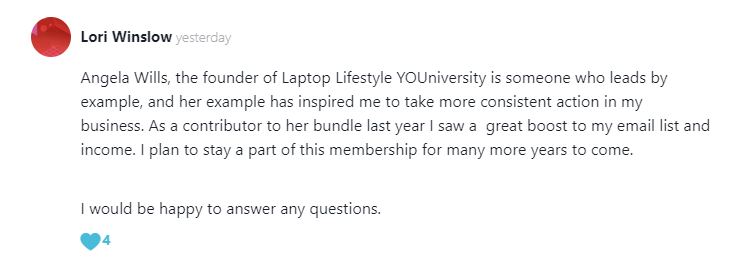 This group not only gives you the tools, training and support to grow your business but ALSO GIVES YOU THE MEANS to do so. Every few months the Laptop Lifestyle Business Club members and I will be doing a JV Collaboration together. In September of 2018 it is the Laptop Lifestyle Business Bundle we will be earning money plus building our lists as a group. Pretty awesome, right?